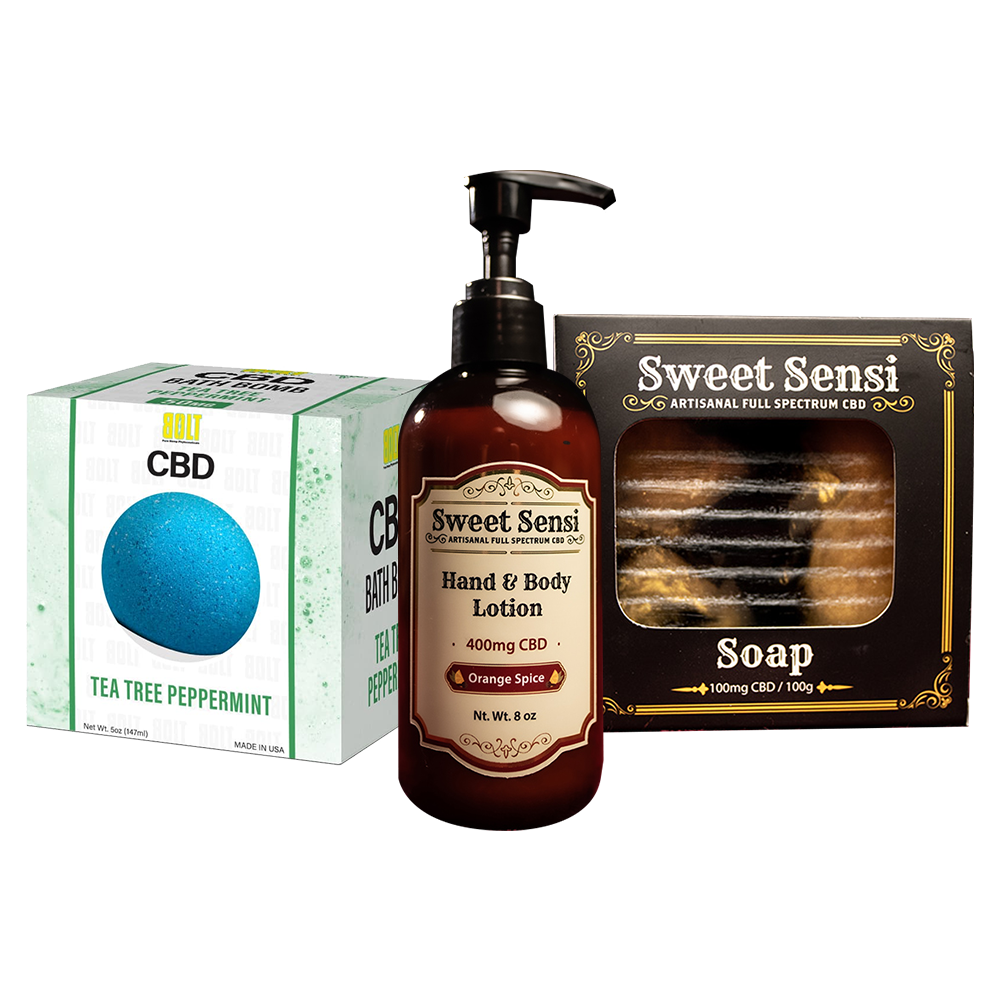 Indulge in self-care with our luxurious CBD-infused bath and body essentials. Our CBD bath bombs combine cannabidiol with essential oils to create a spa-like experience that relaxes tired muscles and calms the mind. CBD soap offers a gentle cleanse while moisturizing your skin with soothing, plant-based ingredients. For everyday hydration, our CBD hand and body lotion blends nourishing botanicals with CBD to leave your skin soft, smooth, and refreshed. Together, these products bring relaxation and wellness to your daily routine.