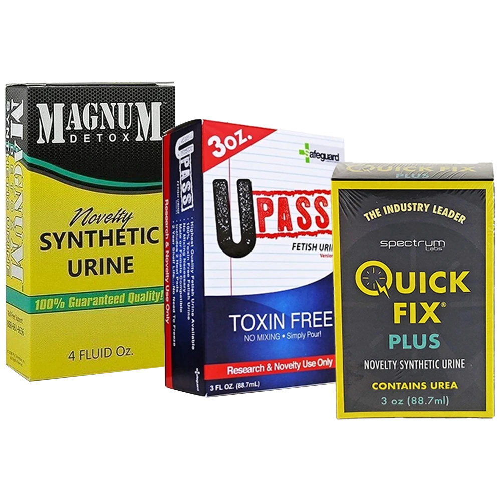 Discover our range of discreet synthetic urine solutions, including the unisex Monkey Flask novelty kit, Magnum Detox with fetish and novelty options, the Quick Fix Pro synthetic urine belt kit, Quick Fix Plus, and UPASS synthetic fetish urine. Each product is designed for reliability, privacy, and peace of mind when discretion matters most.